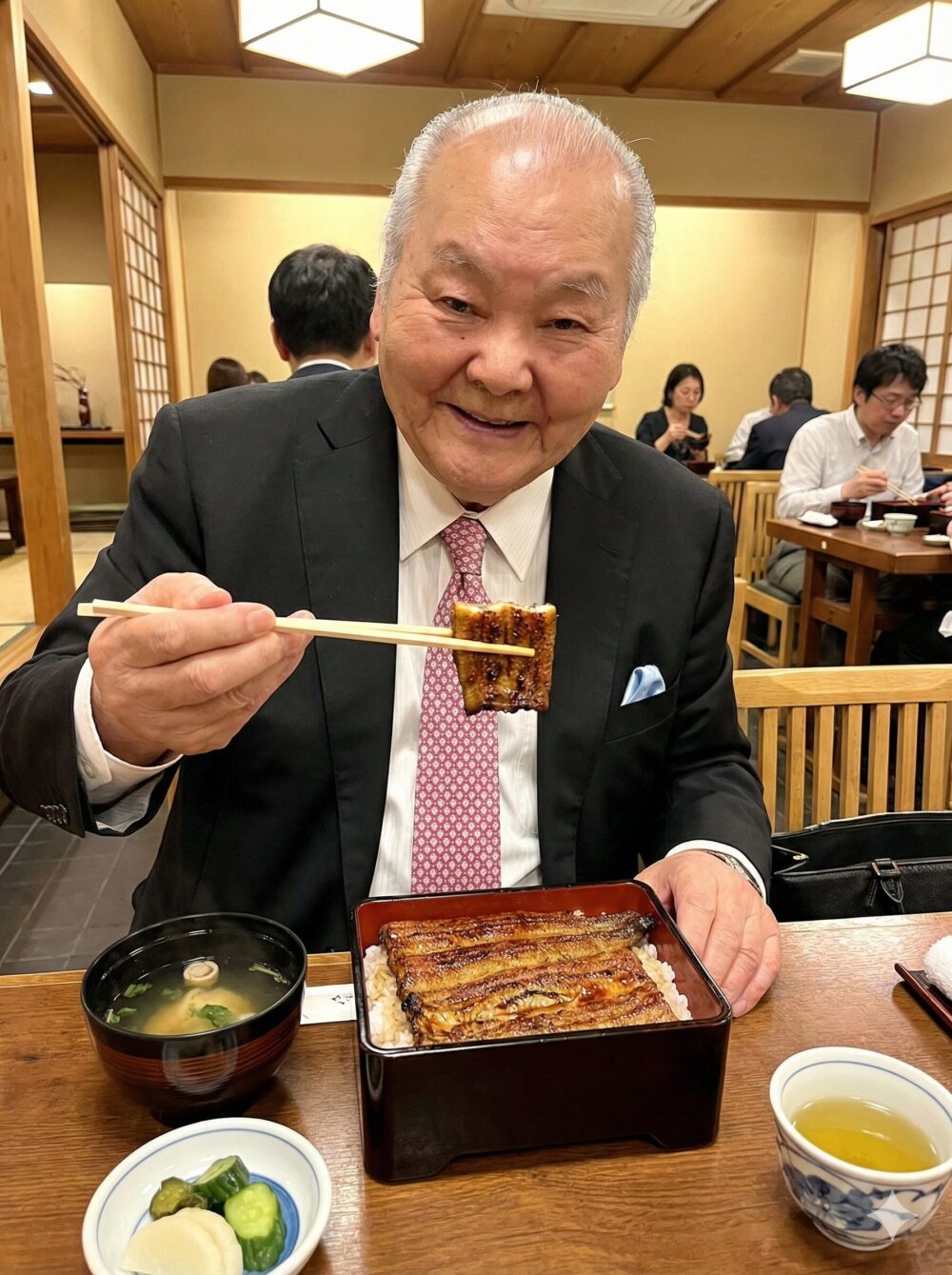 | 特徴 | クリスチャン、うな重好き、ネクタイが長い |