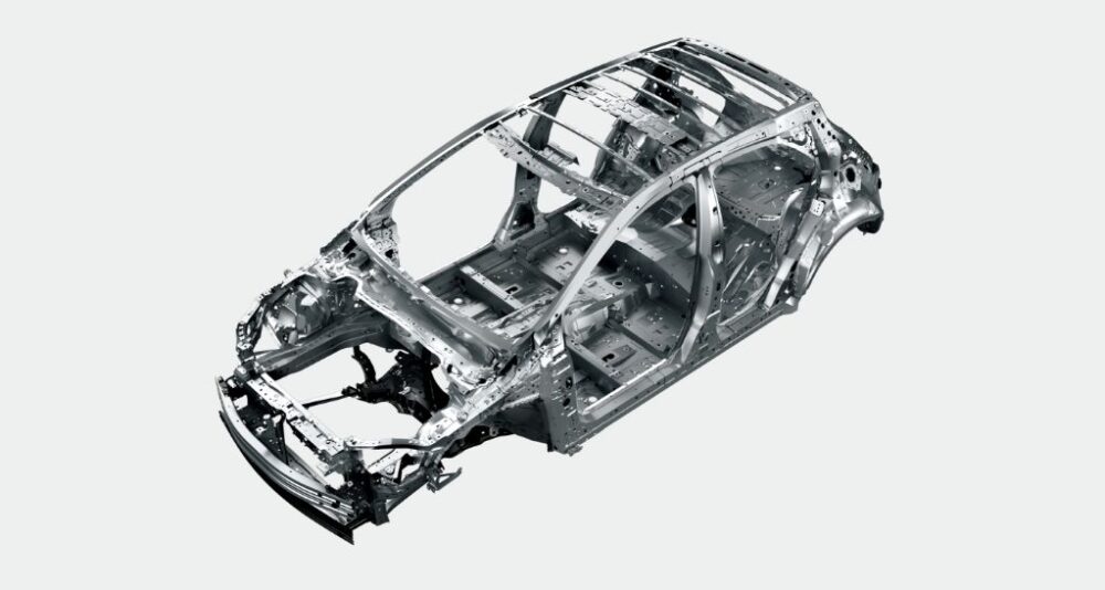 - 【事実】 ボディの接合に「構造用接着剤」を多用し、開口部(ドア周りなど)を環状骨格構造で強化している。