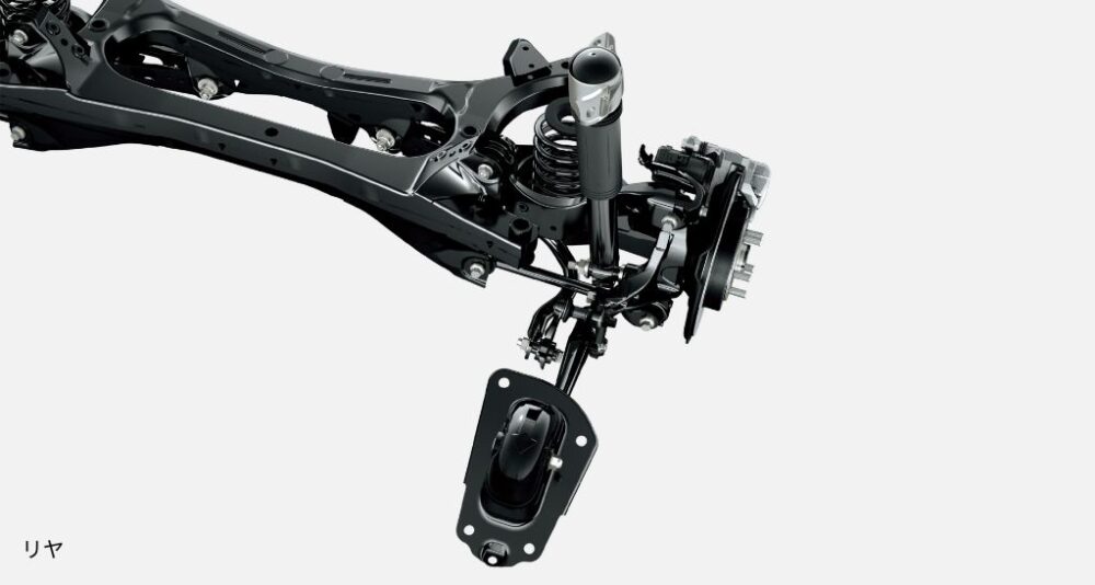 🔰 用語解説:ダブルウィッシュボーン式サスペンション 車の後輪に使われている足回りの構造。部品点数が多くコストがかかるが、タイヤを路面に垂直に接地させる能力が高く、高級車やスポーツカーによく使われる。