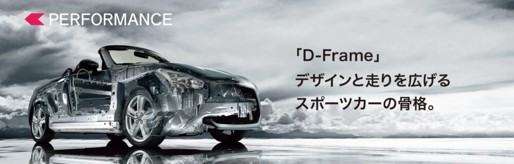 初代コペンと現行型の決定的な違いは、ボディ構造にある。現行型は「D-Frame」という骨格だけで強度を担保する構造を採用した。