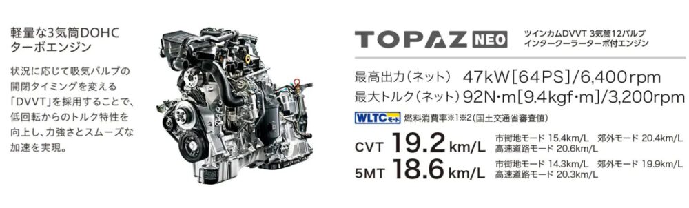 | エンジン型式 | KF型(直列3気筒DOHCターボ) |